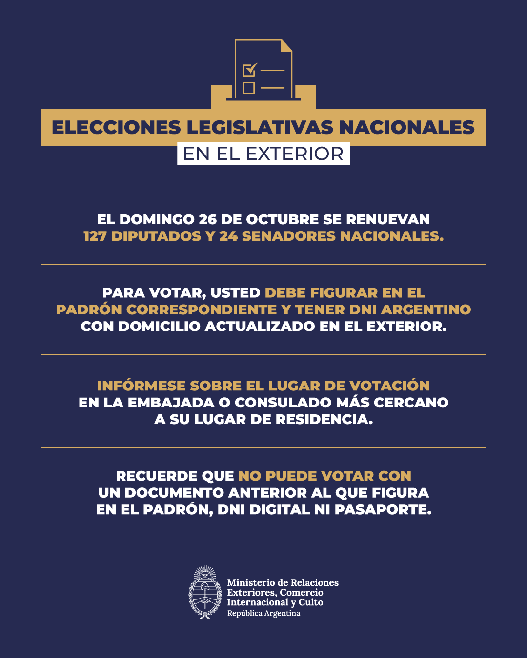 Este 26 de octubre se celebrarán las Elecciones Legislativas 2025. El Padrón se puede consultar en www.padron.gob.ar.